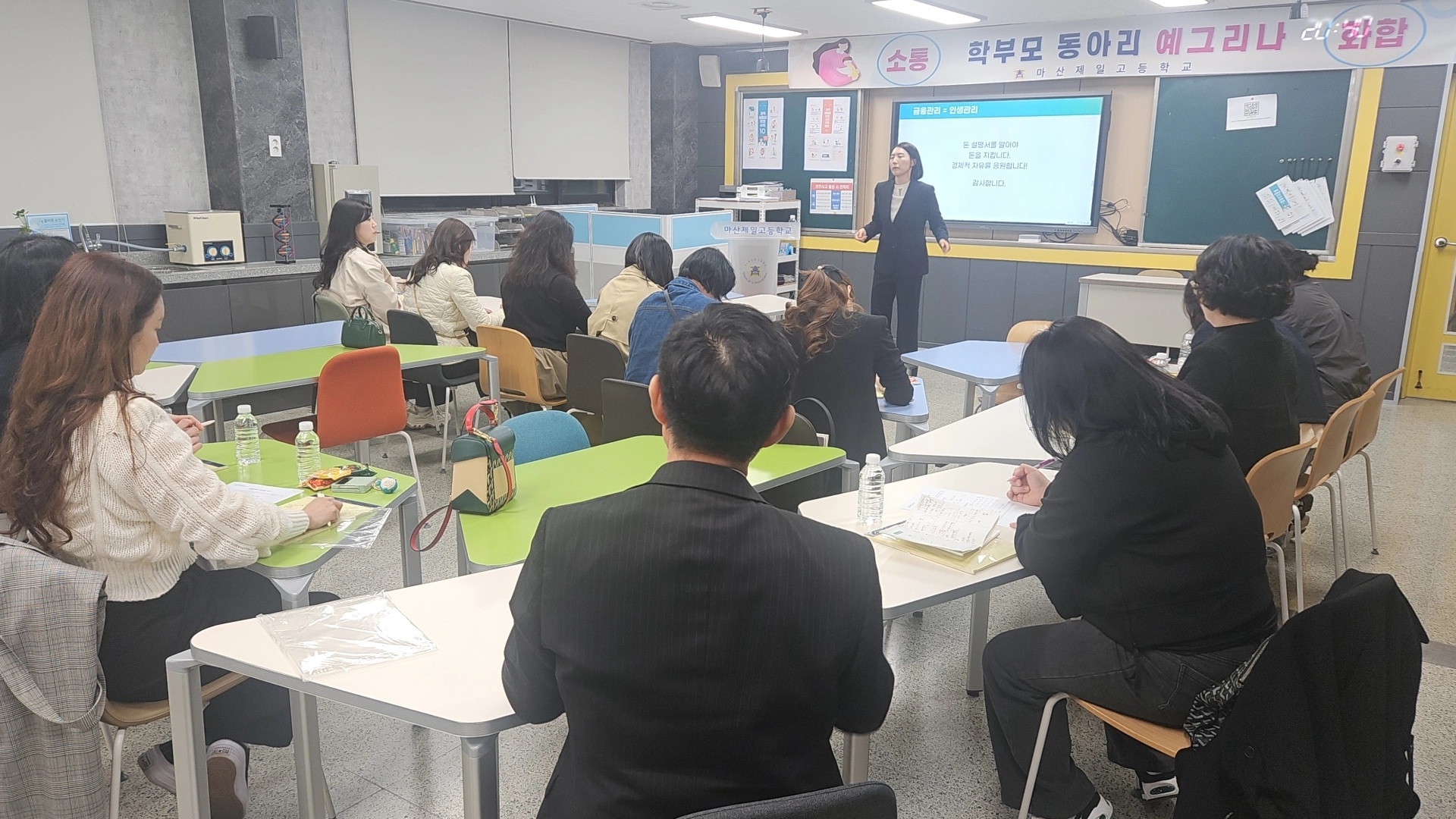 학부모 동아리 활동의 2회차 강의를 담당해주신 경남지역경제교육센터의 조은나라 강사님은 "돈이 모이는 돈 관리 법" 이라는 주제로 유익한 프로그램을 진행하였으며, 자녀들의 경제 관념과 좋은 습관 등에 대한 내용으로 수준 높은 강의를 진행하셨습니다.
